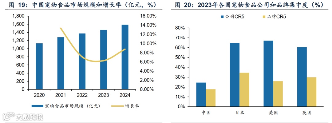预计2028年将达到3,800亿元,期间年复合增长率为14.9%,中国宠物经济持续升温。中国宠物用品及食品市场目前仍处于快速成长的阶段,整体呈现出高度分散的竞争格局。
