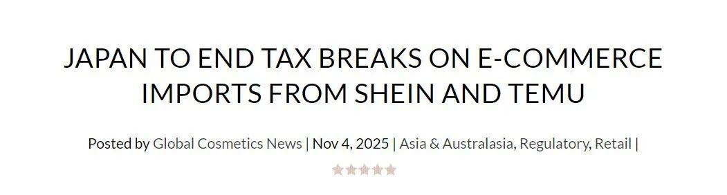 近日有国外媒体报道:日本计划取消实行数十年之久的个人使用小件进口免税政策,以堵住有利于Shein和Temu等海外电商网站的漏洞。