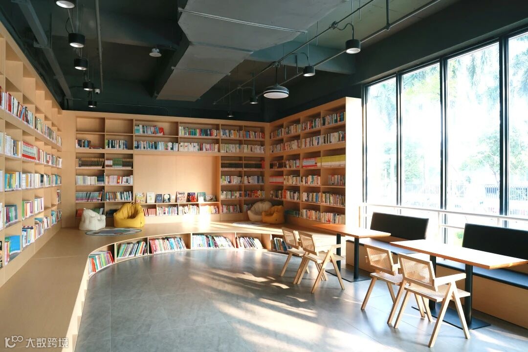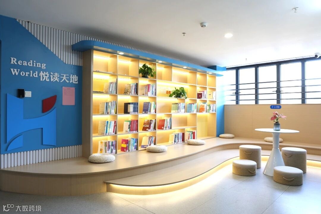 学校在园林内、接待处、课室周边等各个角落,建设盒子书斋、揽月书斋、四方书斋等阅读空间。