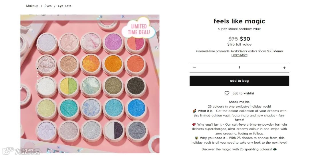 此外,ColourPop 的产品拥有极为多样化的颜色选择。例如,“Feels Like Magic”眼影盘提供高达25种颜色选择,包括传统和时尚颜色,质地丝滑、色泽饱和。这使得 ColourPop 相比同样定位平价的竞品,更具吸引力和选择性。