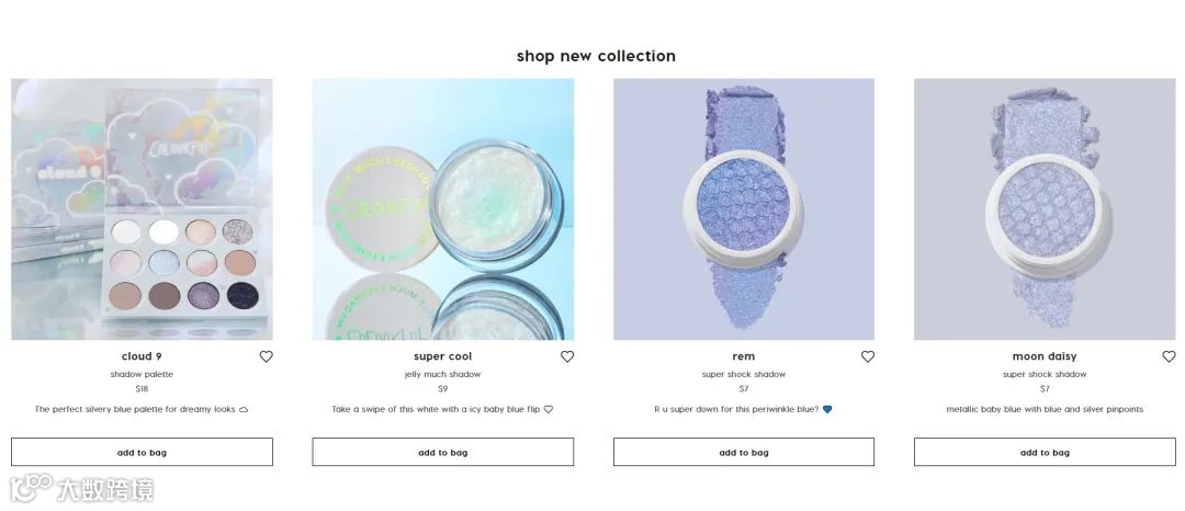 低至7美元的价格和多样化的产品色彩。价格是 ColourPop 相对其他品牌最主要的竞争优势。从官网首页就可以看到,ColourPop 主打产品的价格大约在10美元左右,并且在网站的顶部导航栏中,还特别推出了价格低于10美元的产品专区。其中,一款名为“Super Shock Shadow”的深蓝色眼影更是低至7美元。相比市面上普遍定价在30美元左右的一些品牌,ColourPop 的产品价格仅为它们的一半。