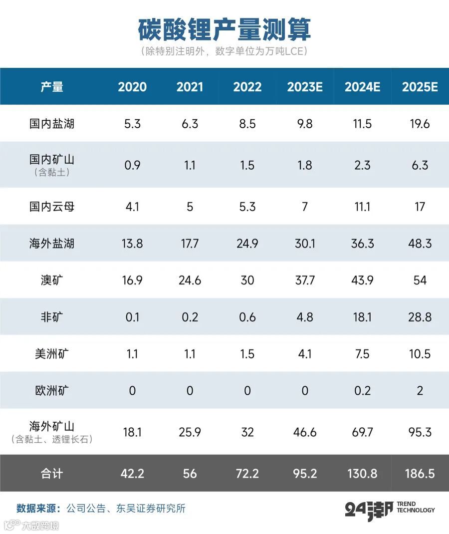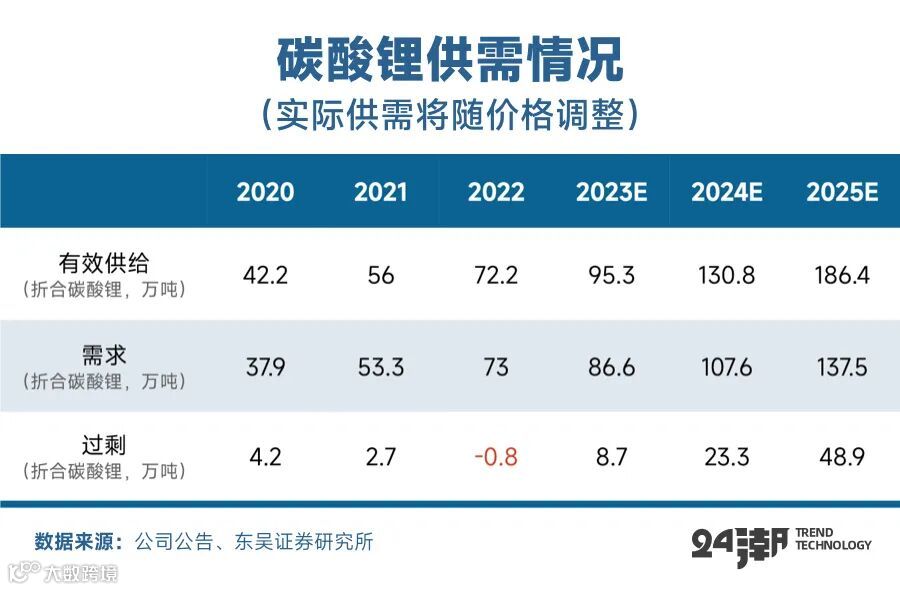 综合安泰科、东吴证券等机构预测,2024年锂电产业需求增长趋势放缓已是大概率事件,锂资源过剩量约为23-25万吨LCE。