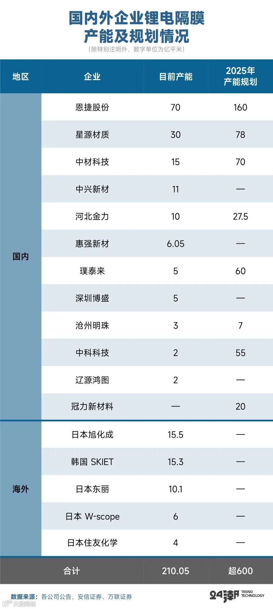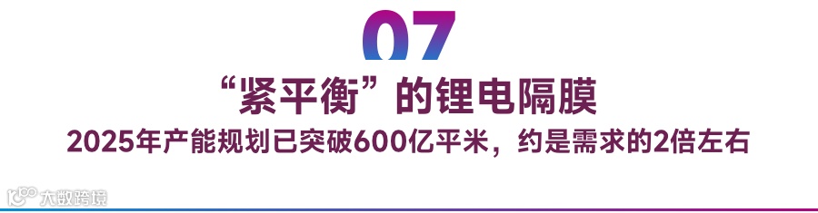 不过需要注意的是,目前国内外锂电隔膜企业到2025年产能规划已突破600亿平米,未来市场竞争形势也不容乐观。