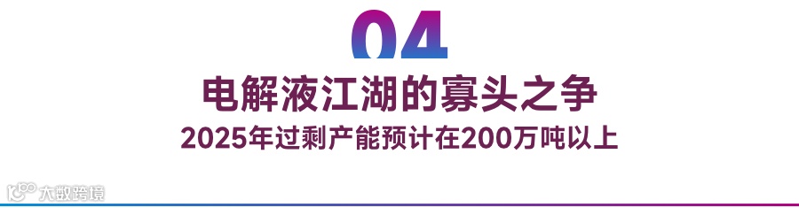 但回归企业层面,未来产业竞争加剧已是必然。比如据开源证券统计,预计到2025年全球电解液产能约为594万吨,远超上述需求预测。