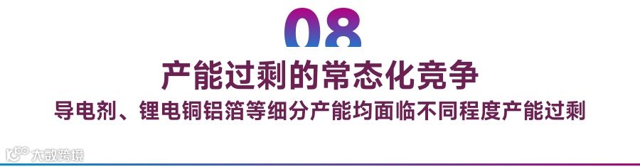 如下表所示,锂电铜铝箔、导电剂等细分赛道几乎都面临产能过剩的压力与风险,只是竞争环境与风险略有差异,我们不再一一赘述,相信读者朋友自有评判。