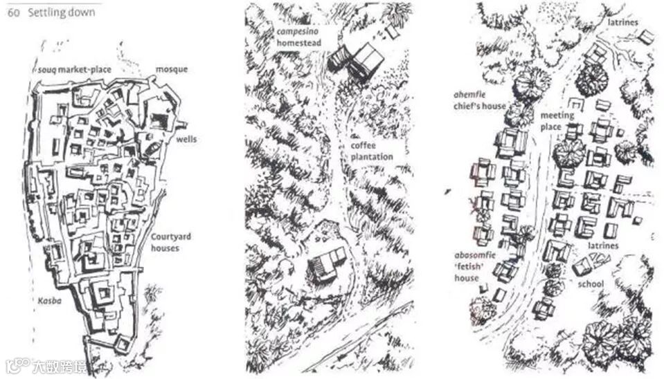 Rapoport将“是否首先应用专业技能建造房屋”定义为区分“原始聚落”与“前工业时期乡土聚落”的界线。通常经历一段漫长的转型过程后,有经验的房屋建造者开始在闲暇时间从事聚落营造的专门性活动,具备了更先进的建造技术,并投入了更广泛的生产实践。事实上,这两种类别的聚落形态往往是难于明确区分和在某种程度上长期并存的。与“传统聚落”一致的是,“前工业时期乡土聚落”的形态也显著的体现出与其建造环境、气候条件等相适应的特征。值得一提的是,尽管具备了这些特征,其形态往往仍具有较好的灵活性,即在对物质条件适应性特征不变的情况下,这些形态依然可以根据未来的各种变化(特别是社会文化条件的变化)而有所改变。因此,由于技术的发展,“前工业时期乡土聚落”往往能在满足居住基本功能的前提下,比“原始聚落”在形态上具有更多的人为创造的个性和特点,而这样的形式特点往往反映了其文化取向。例如,在诸多的“前工业时期乡土聚落”案例中,其空间秩序都往往表达了对其自身社会组织结构(主要是威权结构)的反映。