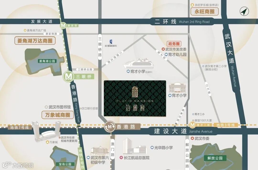 万象城商圈、菱角湖万达商圈、国广商圈、武汉天地商圈、西北湖商圈、CBD商圈6⃣大商圈环伺