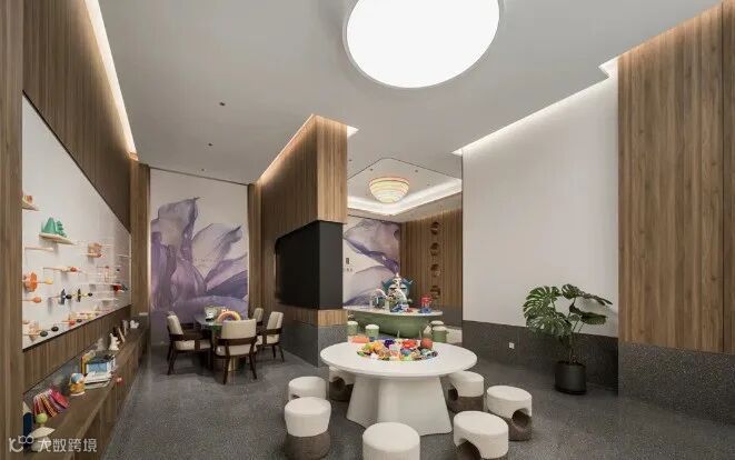 项目在2、5、6号楼还规划了三大架空层泛会所,其中,5号楼规划为“4点半学堂”与轻办公区域,已实景呈现;6号楼架空层规划为邻里茶歇与休闲社交空间;2号楼规划为健身中心与瑜伽房。