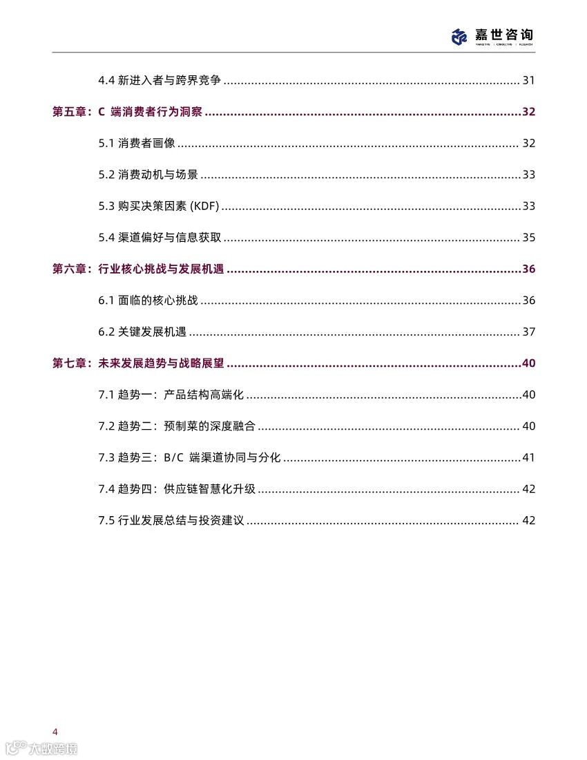 - 挑战:行业面临食品安全与质量控制、冷链物流成本高企且发展不均、产品同质化严重与价格战、C端“不健康”刻板印象等核心挑战。