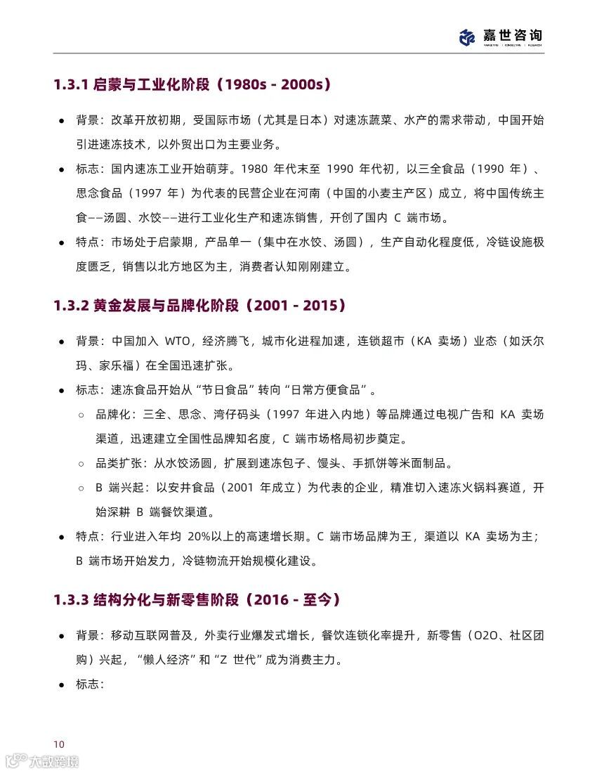 - 行业历程:中国现代速冻食品工业起步较晚,但发展迅猛,经历了启蒙与工业化阶段(1980s-2000s)、黄金发展与品牌化阶段(2001-2015)以及结构分化与新零售阶段(2016-至今)。