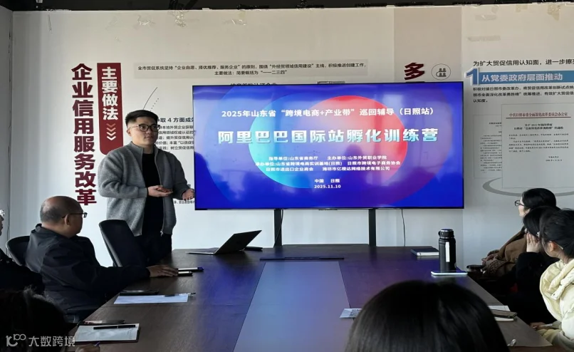 2025年11月10日,由山东省商务厅指导,山东外贸职业学院主办,日照市跨境电子商务协会、日照市进出口企业商会、潍坊市亿橙达网络技术有限公司承办的2025山东省“跨境电商+产业带”巡回辅导(日照站)阿里巴巴国际站实战训练营在日照市正式开营。来自日照各行业产业带企业跨境电商业务负责人、运营人员、营销人员以及各大高校的17名学员参加培训。本次培训旨在推动阿里巴巴国际站整体链路在跨境电商领域的深度应用,帮助企业掌握阿里巴巴国际站平台的运营思路与成单路径。