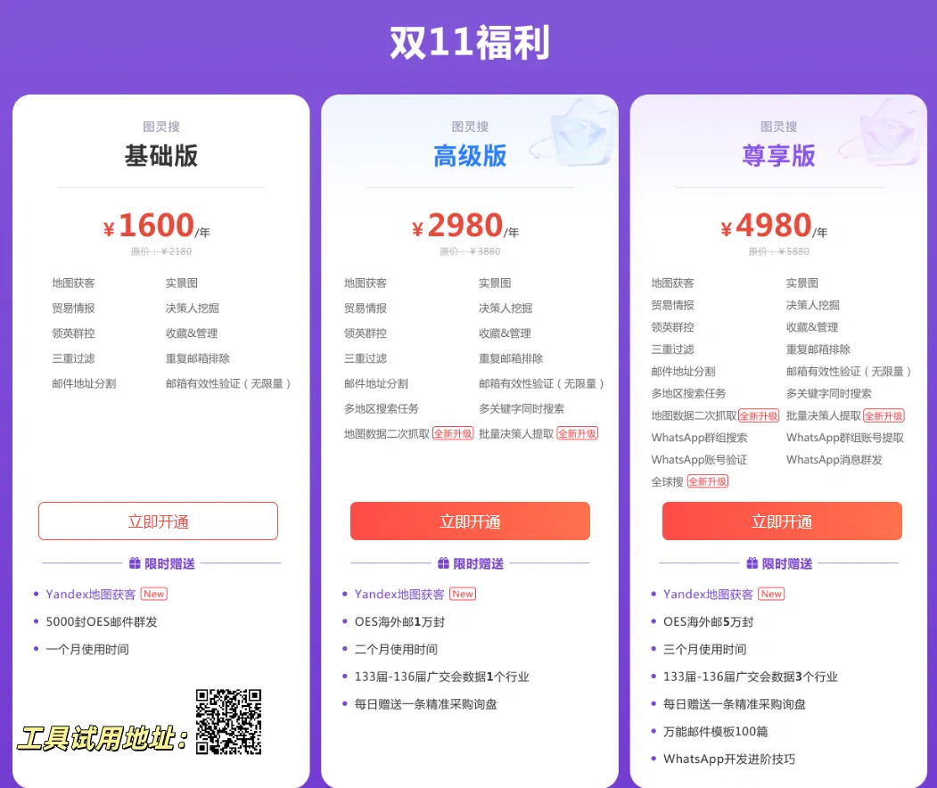核心价值:智能外贸开发一站式平台,彻底解决寻客、触达、管理难题!通过DeepSeek AI助手(深度背景洞察)、全球活跃采购商询盘、日发2万封海外邮突破发信瓶颈、全球品牌库高效检索。重磅福利:购买两年套餐,立赠第三年使用权!
