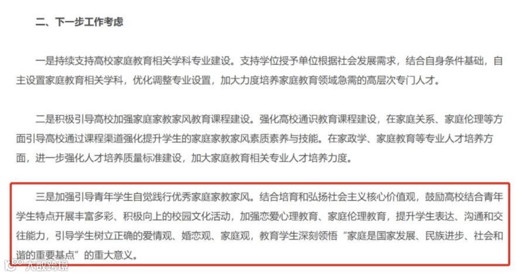 图4 教育部分鼓励高校加强恋爱心理教育、家庭伦理教育(图源:网络)