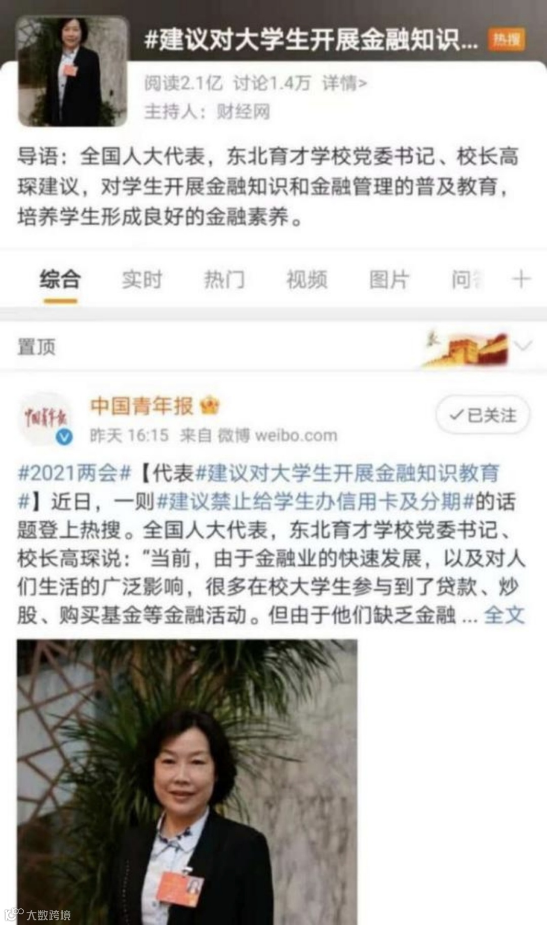 图3 “建议对大学生开展金融知识教育”微博话题(图源:网络)