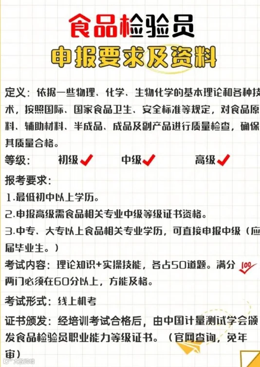 农产品食品检验员证书及报名方式