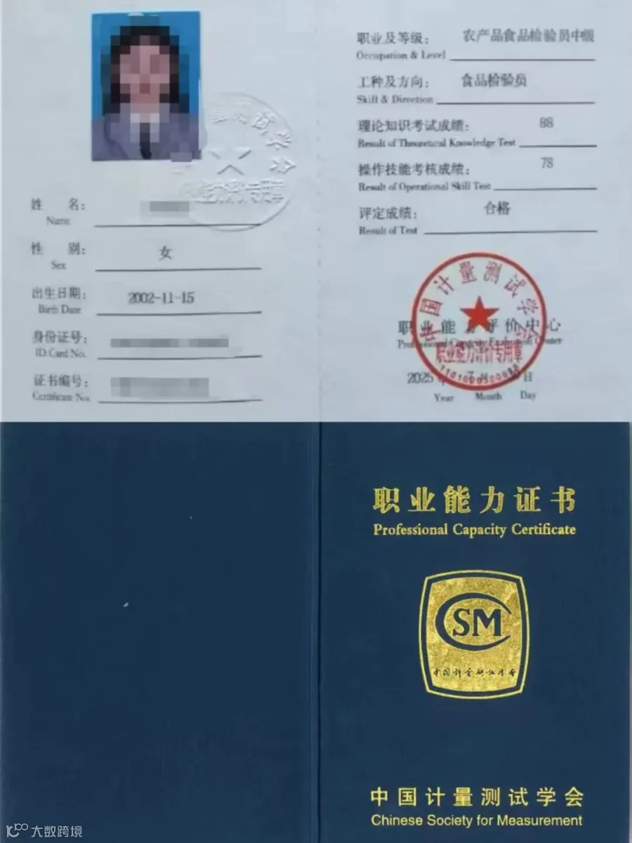 1证书颁发证书是由国家市场监管总局直属机构中国计量测试学会颁发,证书终身有效,无需年审,全国通用。考试通过后正常15个工作日内证书下来。