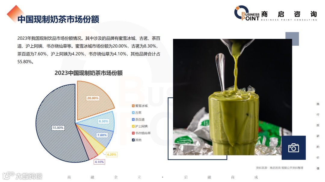 2020年销售额为865亿元,2021年增长至1020亿元,2022年达到1192亿元2023年为1405亿元,2024年则升至1658亿元,整体呈现出持续增长的趋势,反映出中国奶茶行业在这几年间规模不断扩大,市场需求较为旺盛,商启咨询预计,2025年中国奶茶行业市场规模将超过3000亿元,2030年中国奶茶行业市场规模将达到4903.2亿元。