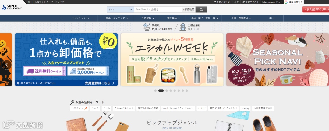 简介: 日本最大的网络批发平台之一,主要面向实体店铺和网店等商户。产品涵盖服饰、杂货、生活用品等。适合从事快消品、设计类、时尚类产品的外贸人。