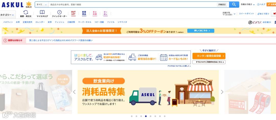 简介: 日本商家中知名度很高的B2B交易市场,主要提供文具、办公用品、办公家具等商务必需品。虽然偏向办公采购,但其供应商和合作企业网络庞大,可以作为中小企业客户的开发入口。