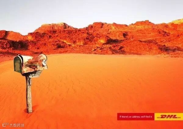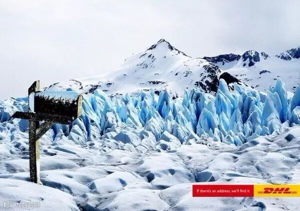 这系列广告意思是,无论沙漠、冰山、原始深林,DHL都能送到。
