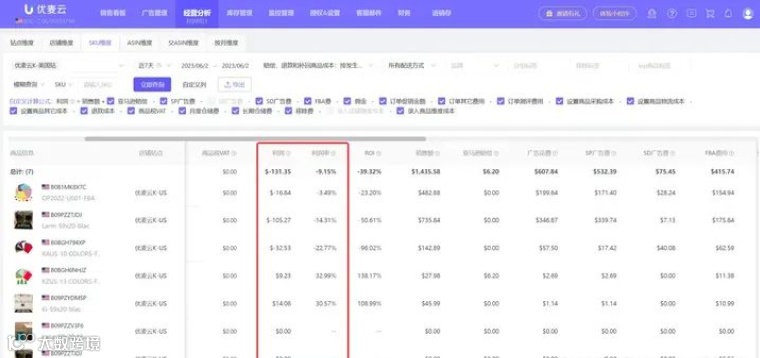 优麦云-经营分析-利润分析-sku 纬度