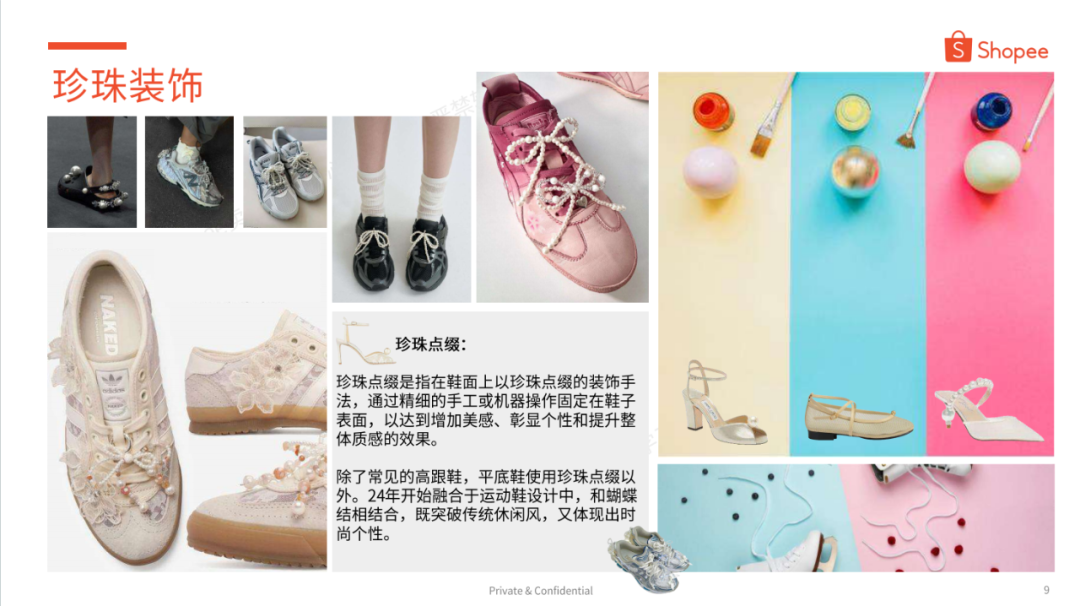 报告梳理了第四季度的关键营销节点与气候特点,指出派对鞋款如高筒靴、尖头高跟鞋在圣诞期间需求旺盛。在流行风格方面,鹿皮皮革、芭蕾运动鞋、珍珠装饰元素以及可外穿防水拖鞋成为新趋势,IP联名系列也持续受到市场青睐。