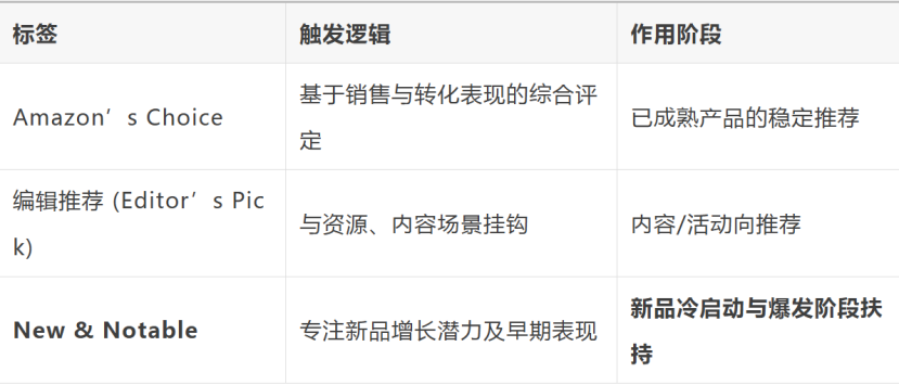 New & Notable”是亚马逊专门为具备潜力的新上架商品推出的一种官方推荐标签,可理解为平台为潜力爆款提供的“早期流量认证”。