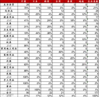 日本的代工厂主要生产:卫生用品和食品,韩国代工厂主要生产卫生用品,泰国和越南也有一部分代工厂,主要生产厨房用品、软装用品、文具、园艺用品、化妆品和宠物用品。
