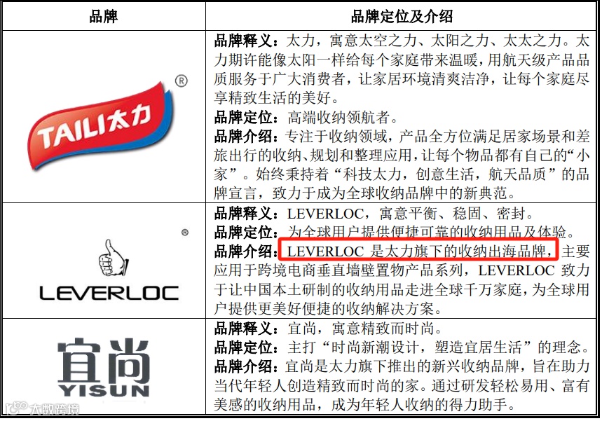 太力将自己定位为中高端家居收纳用品企业,旗下拥有“太力”、“LEVERLOC”和“宜尚”等多个自有品牌