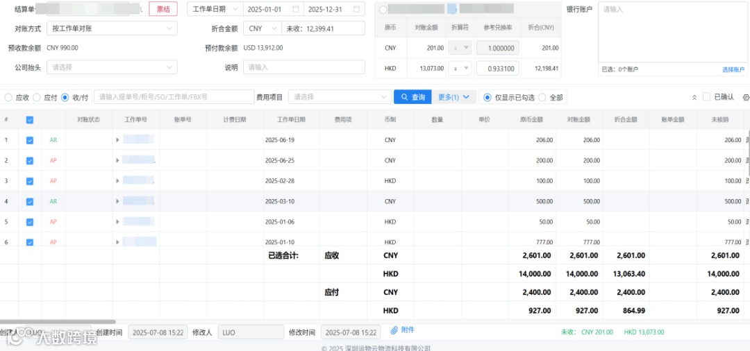 费用与账单无缝衔接: 从费用高效录入(支持全键盘操作、模板化批量处理、智能识别如SO补料信息),到账单的灵活生成(支持全选或单选生成,关键金额锁定需规范流程修改)、汇率的自动获取与调整(默认取最近日期,支持手动修正),业务操作数据应自然、流畅地沉淀并转化为标准的财务流程输入。