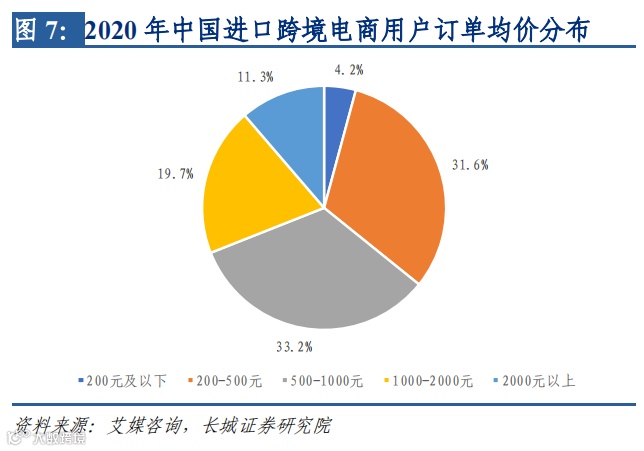 预算空间的提升哺育高端消费,而中低线城市高端消费由于实体销售下沉不足而依赖电商渠道,从需求端推动高端消费线上化。个性化叠加高端化的消费浪潮将刺激更多元的市场需求,进而 推动行业整体需求增长。根据艾媒咨询,在2020年,跨境购物订单均价在500元以上的 用户已占64.2%,