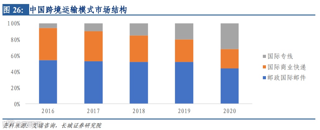 3.1 直邮:邮政占据主流,专线猛烈成长