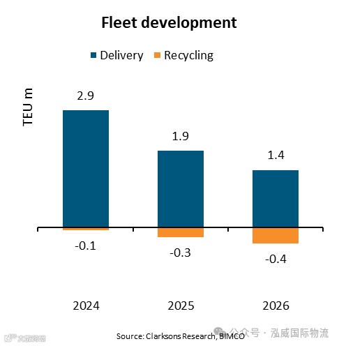 拆船方面,2024年拆解量下调至10万标准箱,2025年维持30万标准箱低位,2026年升至40万标准箱[k]