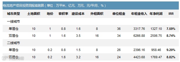 物流地产投资回报:一个具体的测算