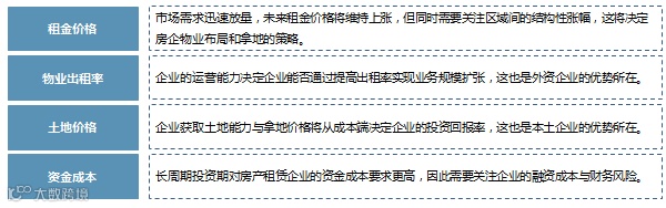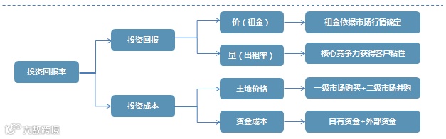 从利润和成本两方面考虑物流地产的投资回报,核心要点是资金、土地和客户等要素: