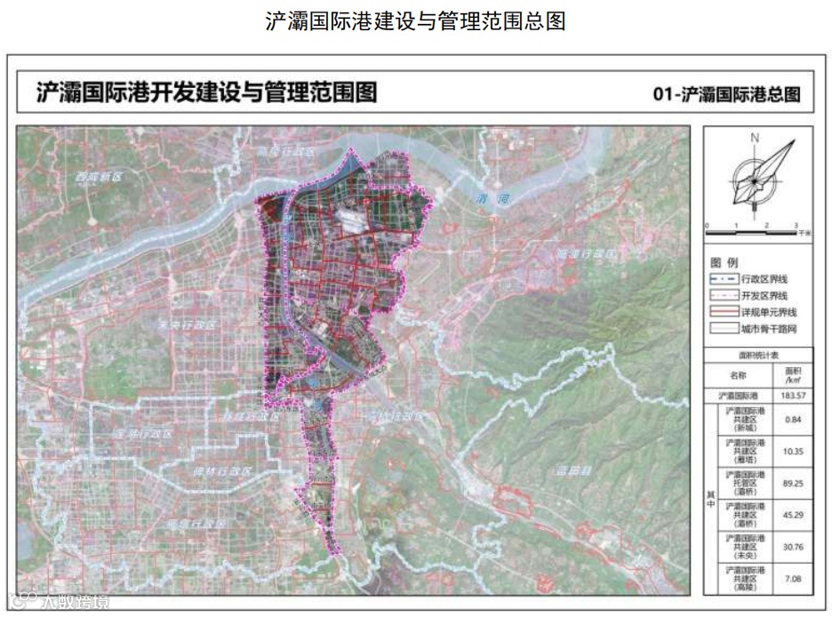 同时,最新流露出的“西安市行政区与开发区协调发展管理规定(试行)征求意见稿”中,也给出了浐灞国际港的建设与管理总范围图。