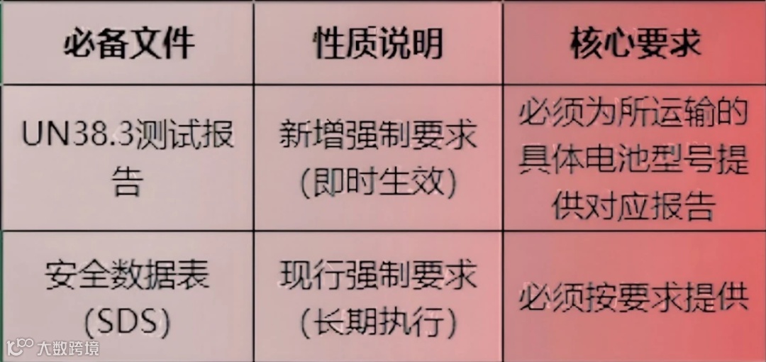 原有强制要求,需包含电池成分、危险性、应急措施等信息。