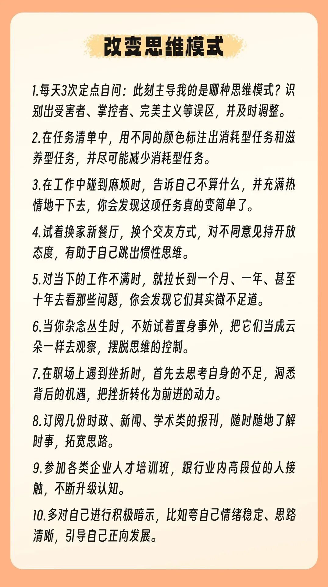 而想要改变思维方式,你可以试着从以下10点开始做起。