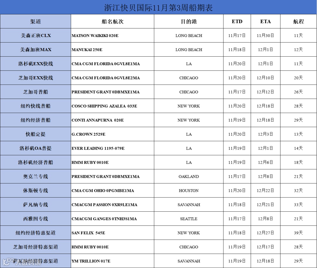 右滑查看浙江快贝11月第3周船期表