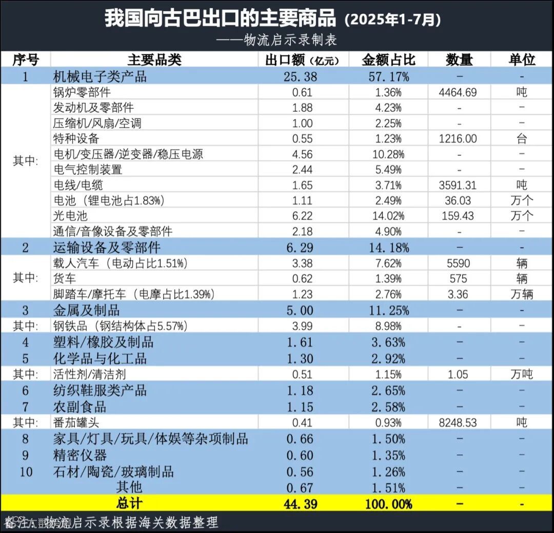 相比进口,我国向古巴出口的产品很多,按海关HS8位编码有1900娱种,物流启示录整理如下: