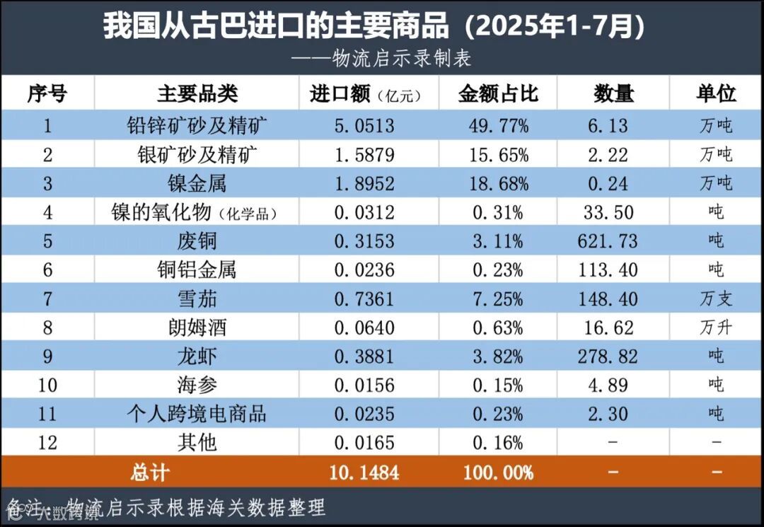 我国从古巴进口的产品很少,按海关HS8位编码仅有37种,物流启示录整理如下: