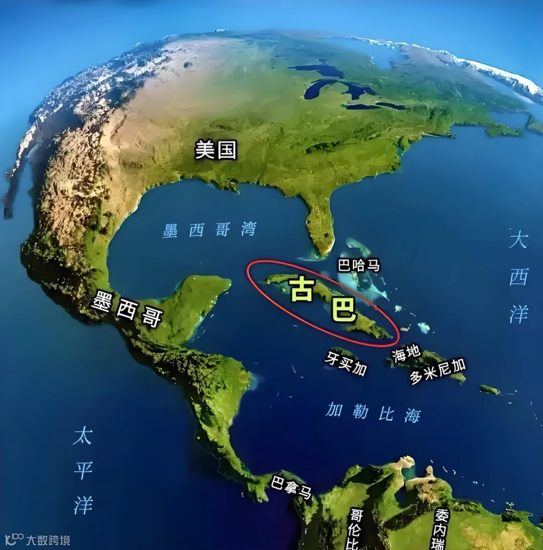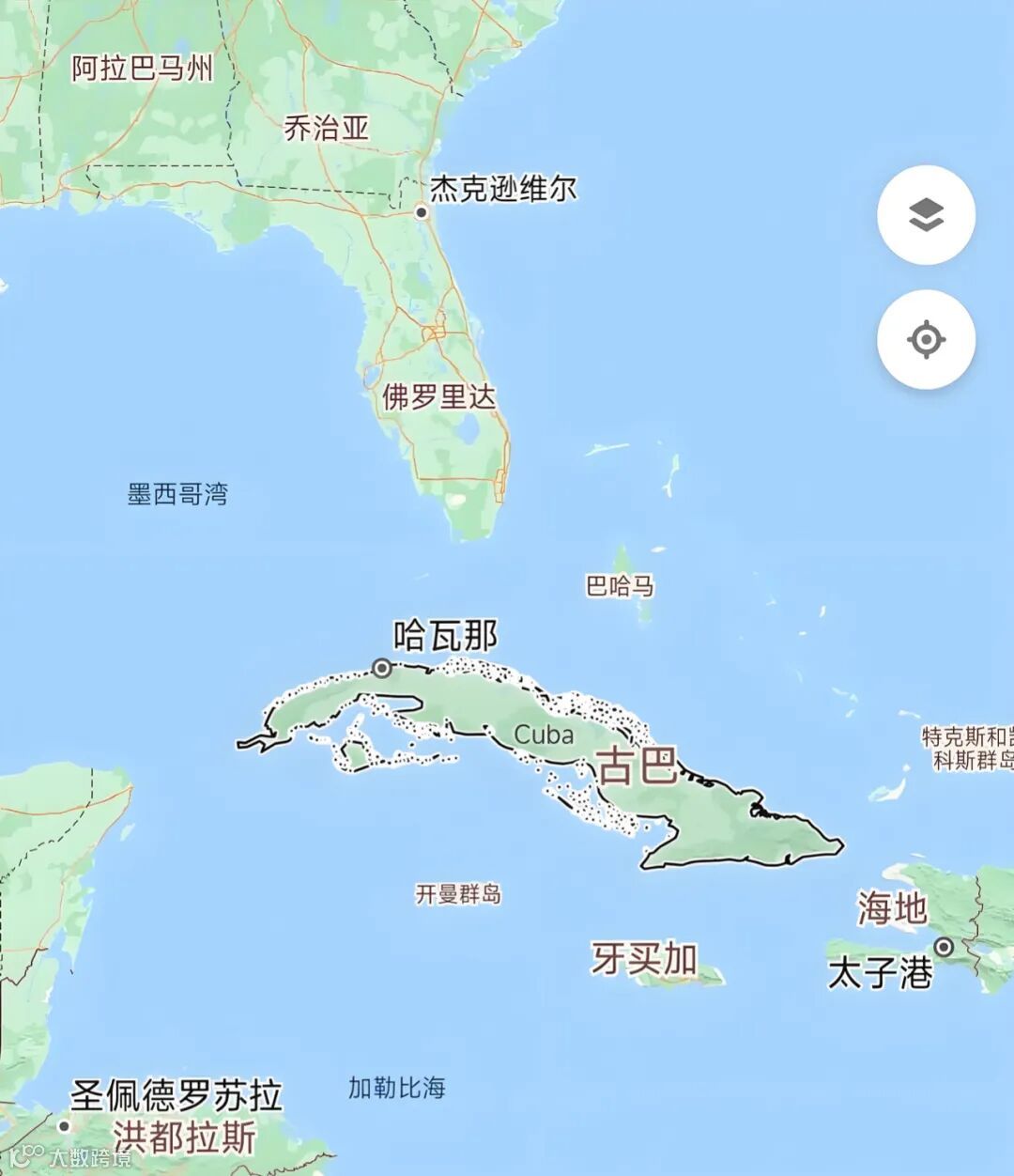 古巴位于加勒比海西北部墨西哥湾入口处,北隔佛罗里达海峡距美国基韦斯特约150公里(佛罗里达州是反古巴大本营,特朗普海湖庄园就在此地)。古巴由古巴岛、青年岛等1600多个岛屿组成,是西印度群岛中最大的岛国。古巴岛形似鳄鱼,也被称为“加勒比海的绿色鳄鱼”。