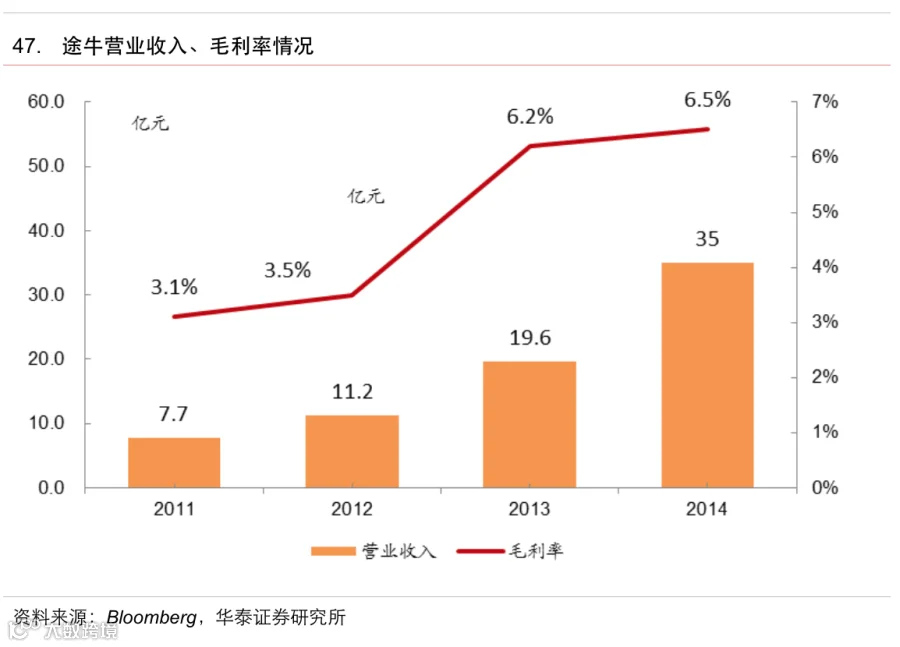 2014年年途牛净收入5.697亿美元,同比大幅增长81.3%。尽管毛利率仍处于较低的6.5%,但较2013年的6.2%有所提高。