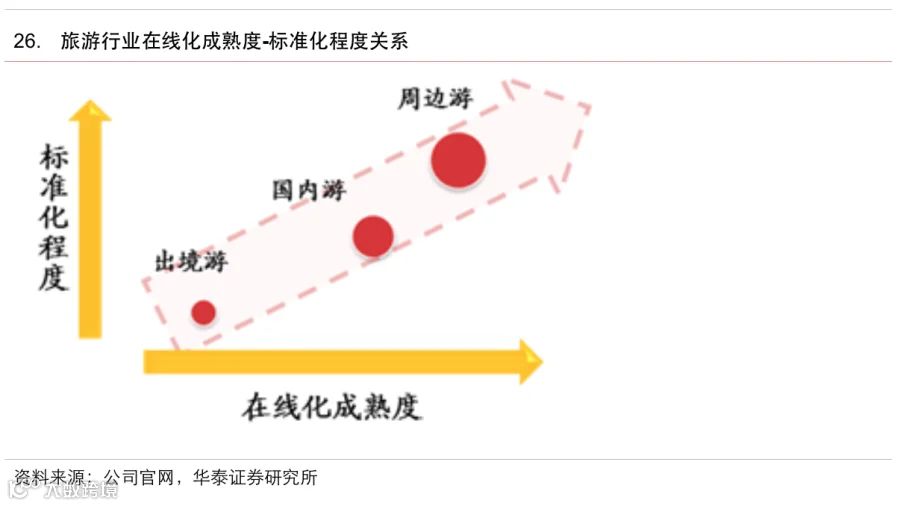 具体到旅游行业,标准化的程度依次是 机票>酒店>周边游>国内游>出境游,这个从数据端也可以轻易验证。