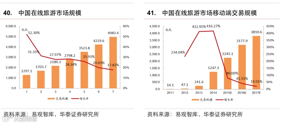 旅游业快速增长和线上化率快速提升,同时移动互联网技术的发展对在线旅游起到了进一步促进作用。在线旅游,特别是移动在线旅游出现了持续爆发式增长。