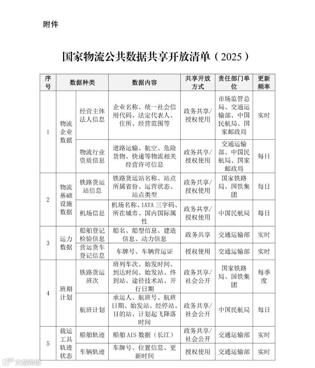 11月10日,国家发展改革委、国家数据局等十部门发布《关于推动物流数据开放互联 有效降低全社会物流成本的实施方案》,同时发布我国首张物流公共数据共享开放清单,十大类物流数据将向社会共享开放,为构建全国统一大市场提供有力支撑。