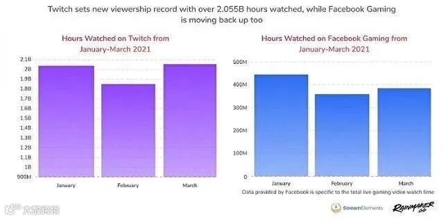 根据StreamElements分析合作伙伴Rainmaker.gg的数据,Twitch在3月份创下了月收视新纪录,达到20.6亿小时。
