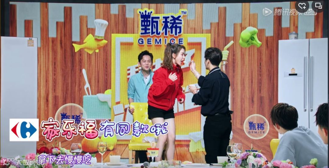 在节目彩蛋植入中,品牌与家乐福线上线下售卖场景同步呈现,整体通过品牌+零售的场景模式加深观众记忆度。而品牌联合的优惠活动信息传递,同样刺激著用户的购买行为,无形中通过节目进行消费暗示和引导。