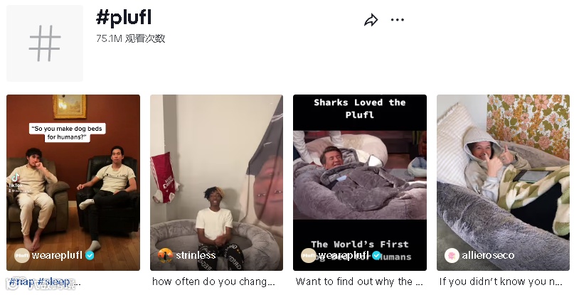 截止目前,产品相关标签#plufl在TikTok上的浏览量已经超过7000万次。