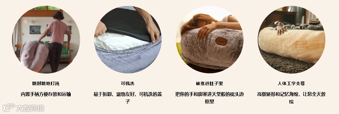 此外,TikTok上还有不少博主自发地为这款狗床打call,自己花式躺,与狗狗或猫猫一起躺,光是躺在里面这一个动作就已经足够吸睛。“这比我预期的还要好,”TikTok博主@allioseco在视频中分享道。另一位影响者@thekalenallen分享了他的 Plufl 视频,展示他和他的两只大狗如何在里面其乐融融。更多内容创造者的加入进一步带动了产品热度的提升。